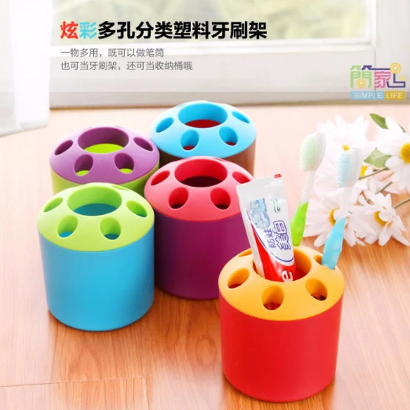 1 Pcs Multifunctional 6 Holes Plastic Toothbrush Pens Pencil Knife And fork Holder Container Tube B