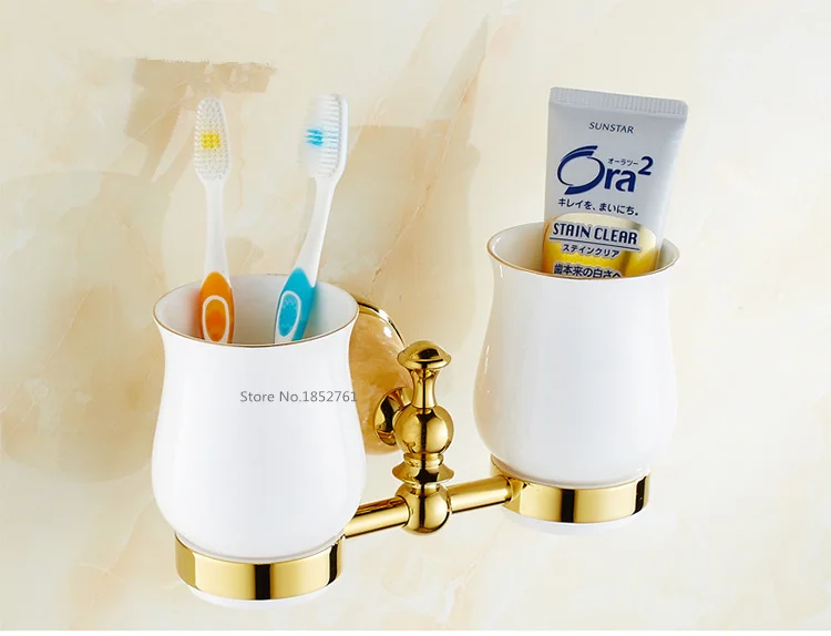 Sale 2016 Bathroom AccessoriesLuxury European Style Copper Golden Finish Toothbrush Tumbler&Cup Holder M