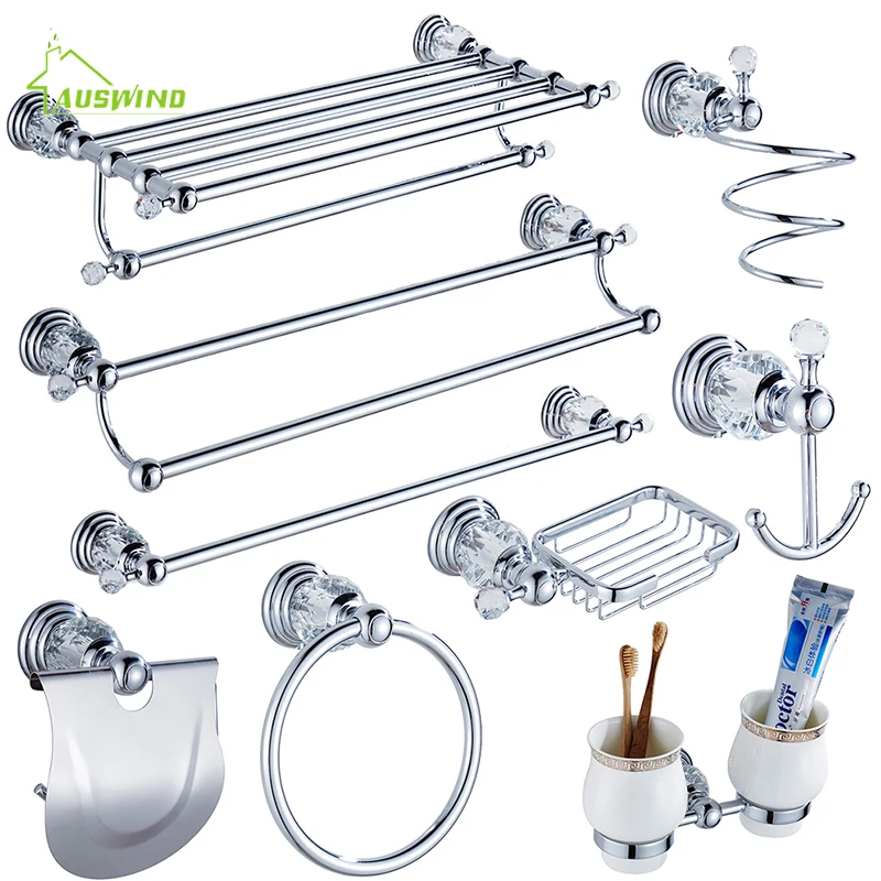 Crystal Bathroom Hardware Set Towel Rack Wall Mount Toothbrush Holder Metal Soap Dispenser Ceramic Bath Accessories In Chrome
