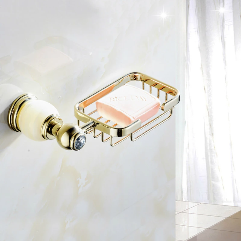 Good Chance for Vintage Polished Solid Brass Soap Dish Soap Rack Soap Basket European Gold Jade Base Soap Net Wall