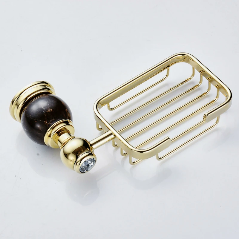 Hot deal Vintage Polished Solid Brass Soap Dish Soap Rack Soap Basket European Gold Jade Base Soap Net Wall