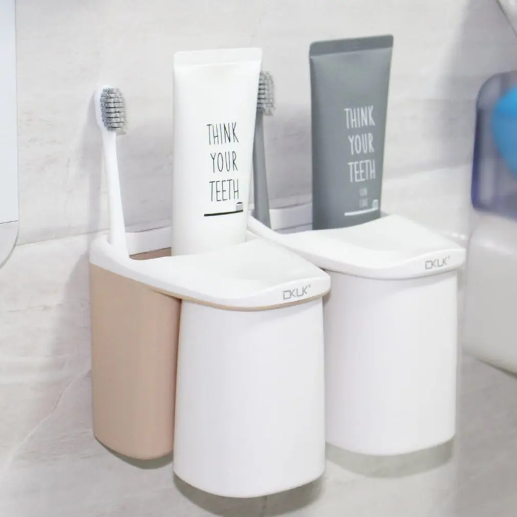Magnetic 2 In 1 Toothbrush Holder Set Plastic Tooth Mug Suction Mouthwash Cup + Holder Bathroom Pro